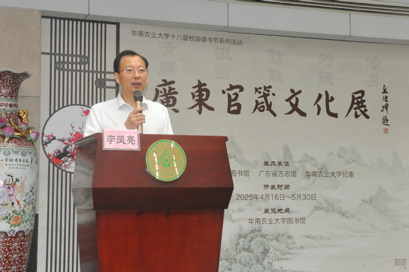 开展仪式上,校党委书记李凤亮教授出席并致辞,校党委常委、组织部部长杨志群同志,校党政办研究室主任兼发展规划处处长孟成民同志,校纪委副书记兼纪检监察室主任黄佳明同志,校党委宣传部部长钟耿涛同志,以及学校深入贯彻中央八项规定精神学习教育工作专班成员、图书馆党政领导、馆总支委员、支部书记、馆员代表、部分学生代表等60多人共同参与。李书记在致辞中指出:“官箴文化是中华优秀传统文化的重要组成部分,广东历史上的清官廉吏及其箴言警句,不仅是廉政教育的生动教材,更是涵养干部政德修养的宝贵资源”。李书记还向全体师生提出三点希望: