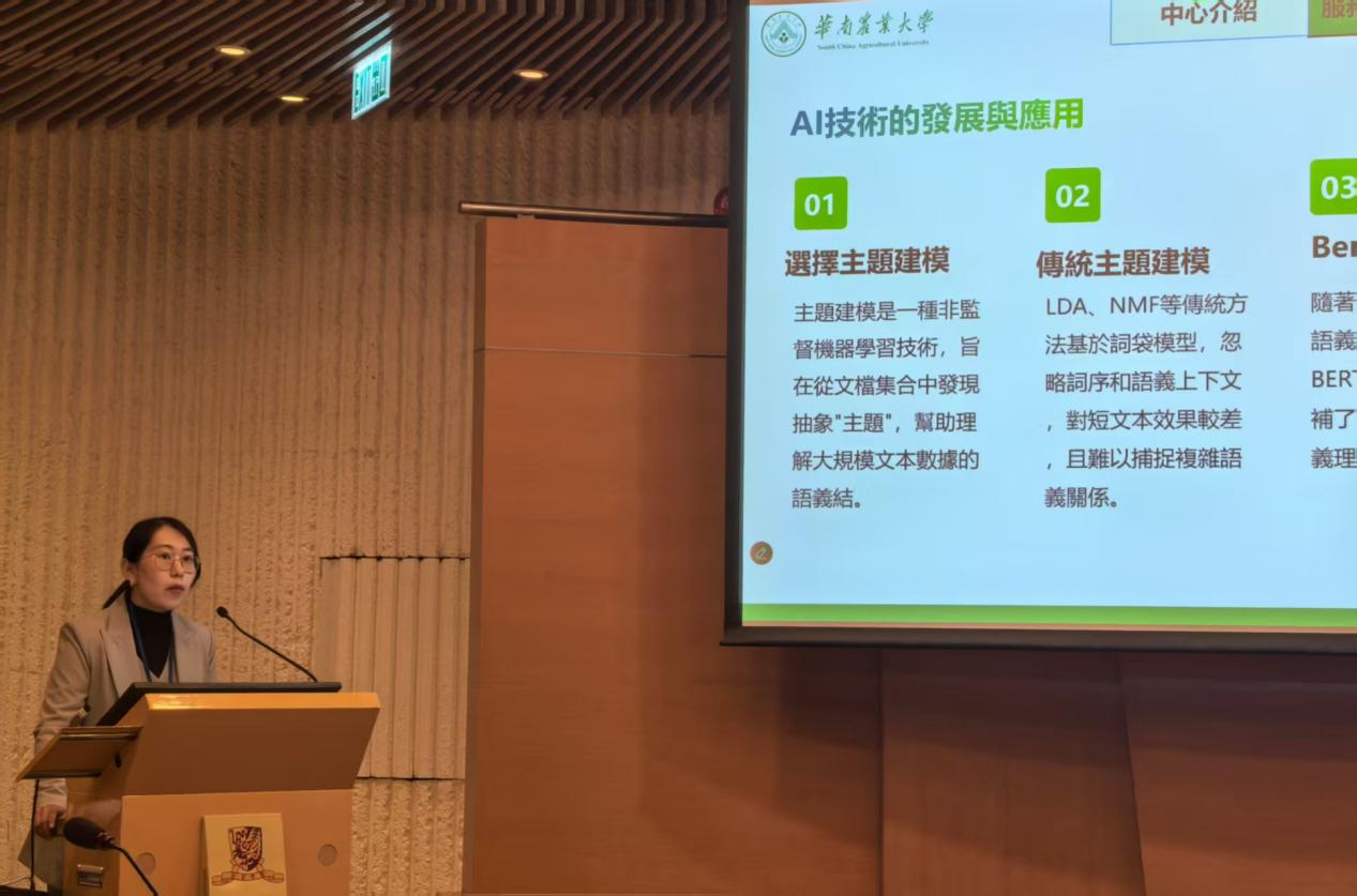 在青年学者论坛环节,我馆代表刘洋作了题为“基于深度学习的木薯产业文献分类研究”专题报告,报告中,她围绕如何运用Bertopic主题建模等自然语言处理技术,构建面向跨学科文献分类的信息服务体系。其发言内容得到与会专家和同行们的积极评价与认可。
