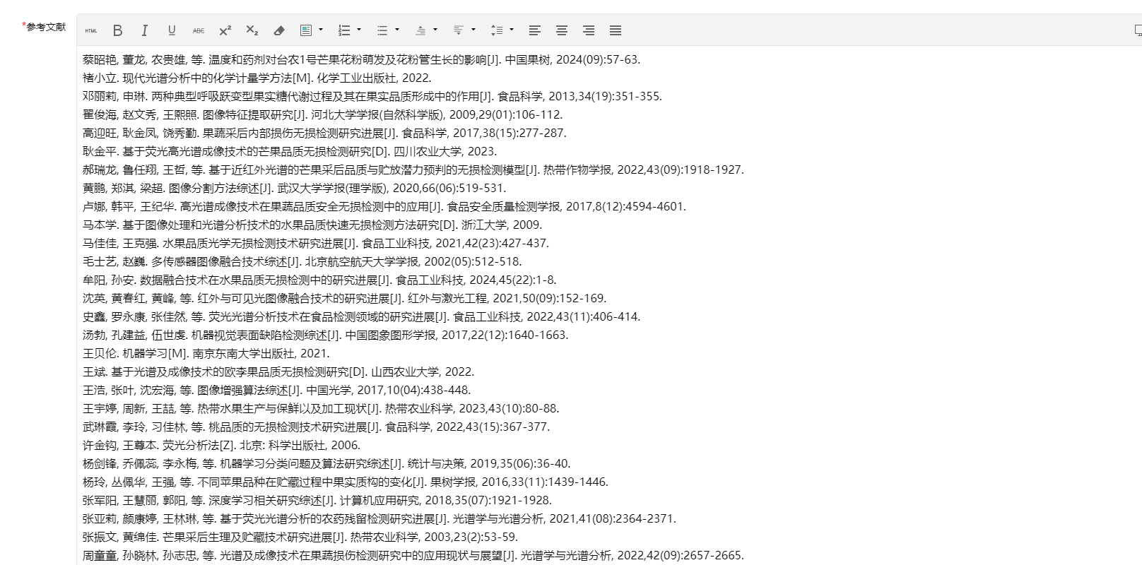 (6)注意事项:“参考文献”的填写。参考文献内容填写时,请直接从学位论文的Word文档中复制参考文献内容,切勿手动进行分行操作。正确的填写格式可参照图13至图14。
