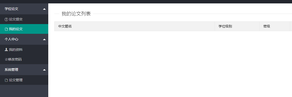 再通过“研究生学位论文提交”统一身份认证登录界面后,进入“学位论文管理系统”。