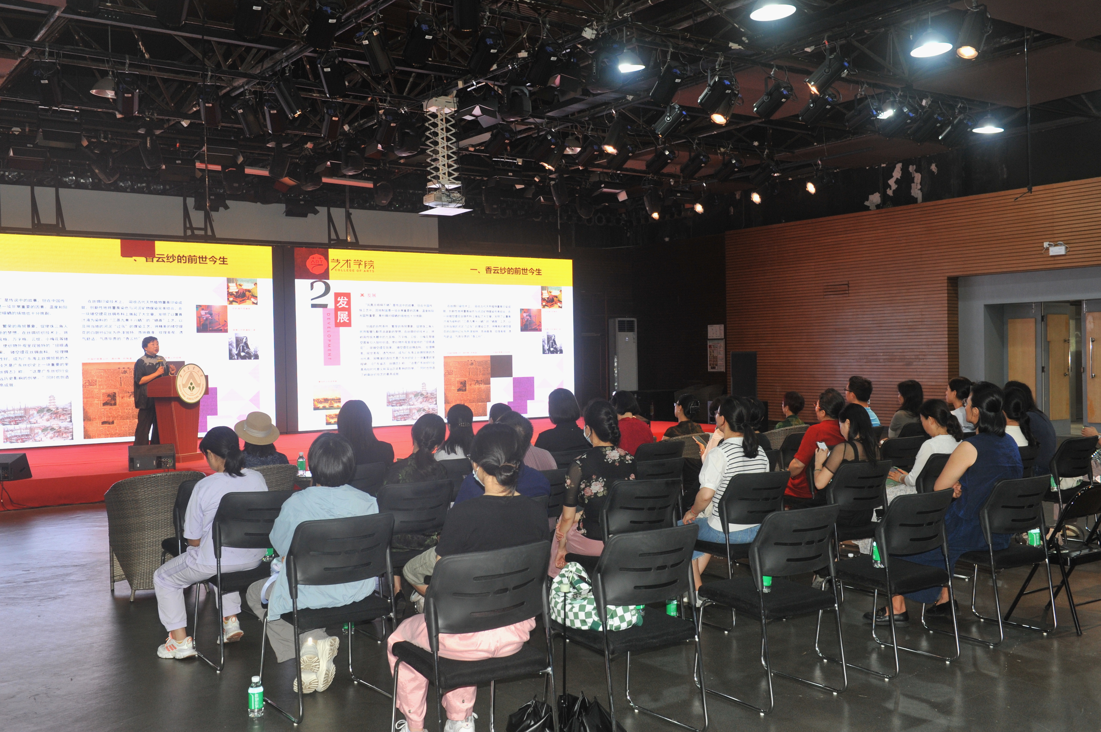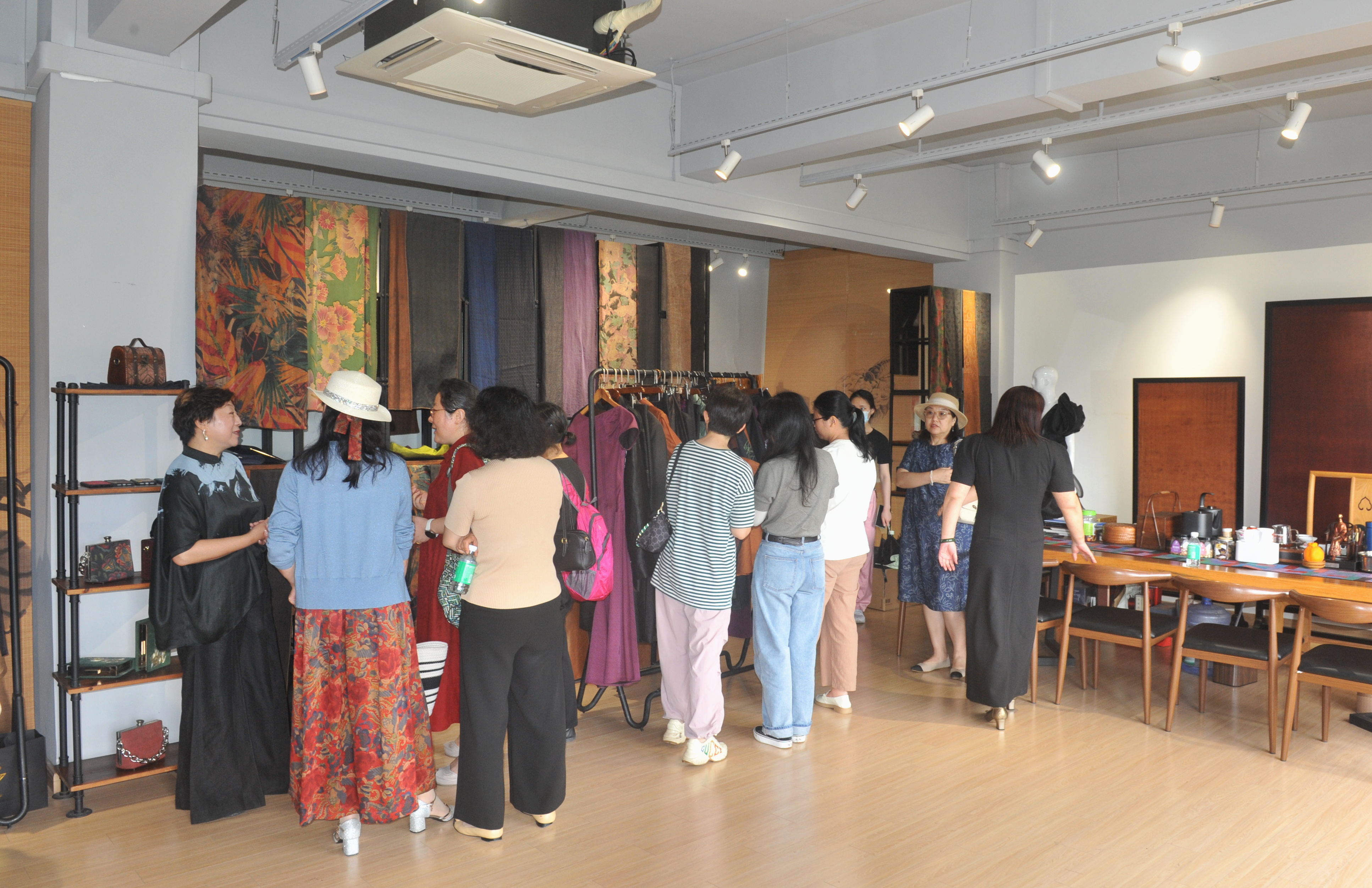 5月22日上午,由校工会、图书馆联合指导,艺术学院支持,校教职工紫荆悦读协会主办的"耕读文明的千年对话——非遗香云纱的传承与创新"读书会在艺术学院举行,校外香云纱爱好者和校内师生代表30余人通过预约等方式参加了本次活动,与图书馆党政领导、校工会干部及紫荆悦读协会的会员们共享香云纱的传统文化之美。此次读会书为第十八届校园读书节系列活动之一,着力于以党建引领,凝聚工建合力,丰富教职工校园文化生活。