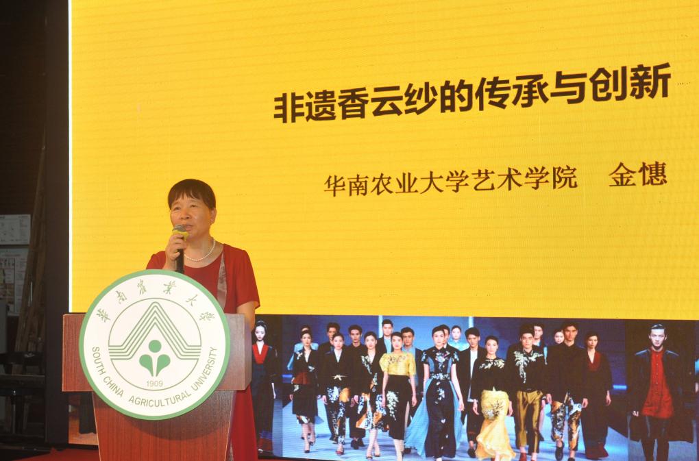 图书馆党总支书记刘月秀在致辞中高度赞赏了主讲人金憓教授长期以来在香云纱非物质文化遗产的传承、创新所作的贡献,并对本次活动的主题和形式给予了充分认可。刘月秀指出,选择“香云纱”这一非遗技艺作为文化对话的载体,正是因为它完美诠释了耕读文明的精神内核——从桑蚕丝织的农耕智慧,到染整技艺的文化沉淀,一匹香云纱的背后,是岭南水土的滋养、匠人心血的凝结,更是中华文明生生不息的密码。香云纱的传承与创新,体现了华农人对非物质文化遗产和优秀传统文化的责任与担当,她呼吁大家以此次读书会为起点,将论文写在田野上,让创新绽放在华农,共同守护这份穿越千年的东方之美。