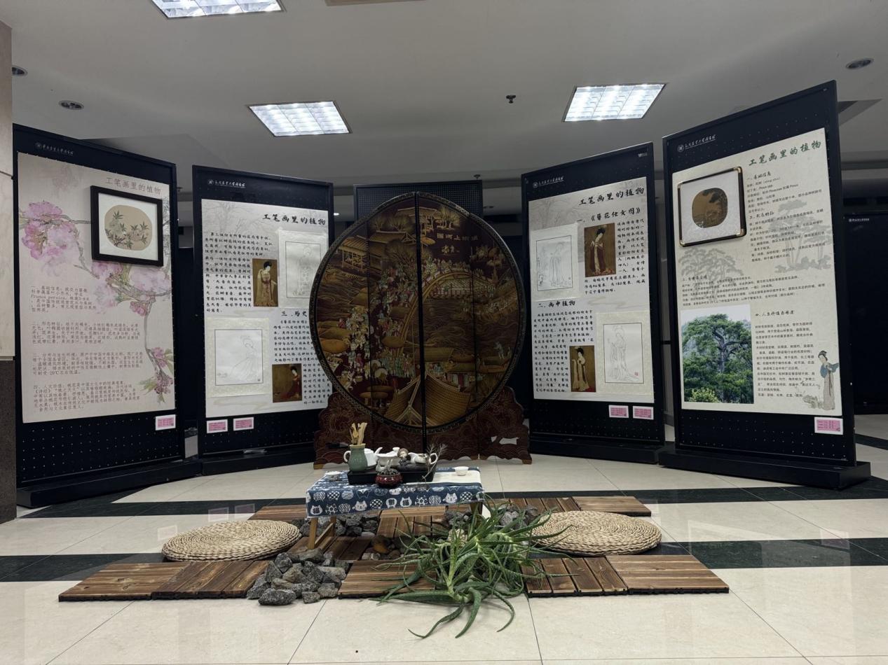 中国工笔画是中华优秀传统文化的重要载体,其严谨精细的“工”背后,深深蕴含着儒家“格物致知”的理性精神、道家“天人合一”的自然观与“书画同源”的审美理念。本次展览工笔画作品大多是图书馆“墨香里的传统文化”国画培训班学生作品,也是图书馆黎小妮老师连续5年开展的“墨香里的传统文化”国画培训的一次成果集中展示,虽然同学们的笔法尚且稚嫩,但是展览却是培训班师生将传统艺术与专业知识相结合,与我校学科特色相结合的一次创新性尝试。
