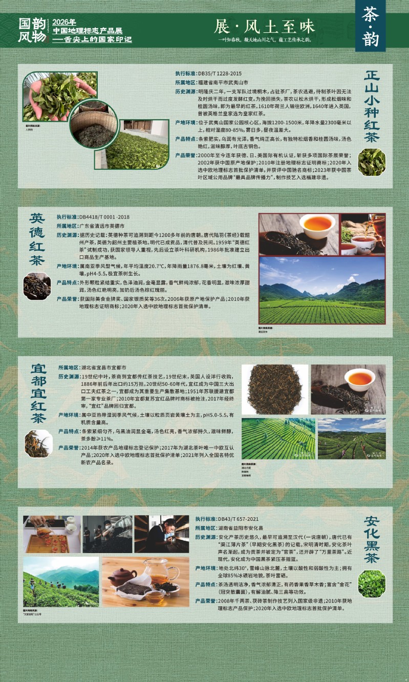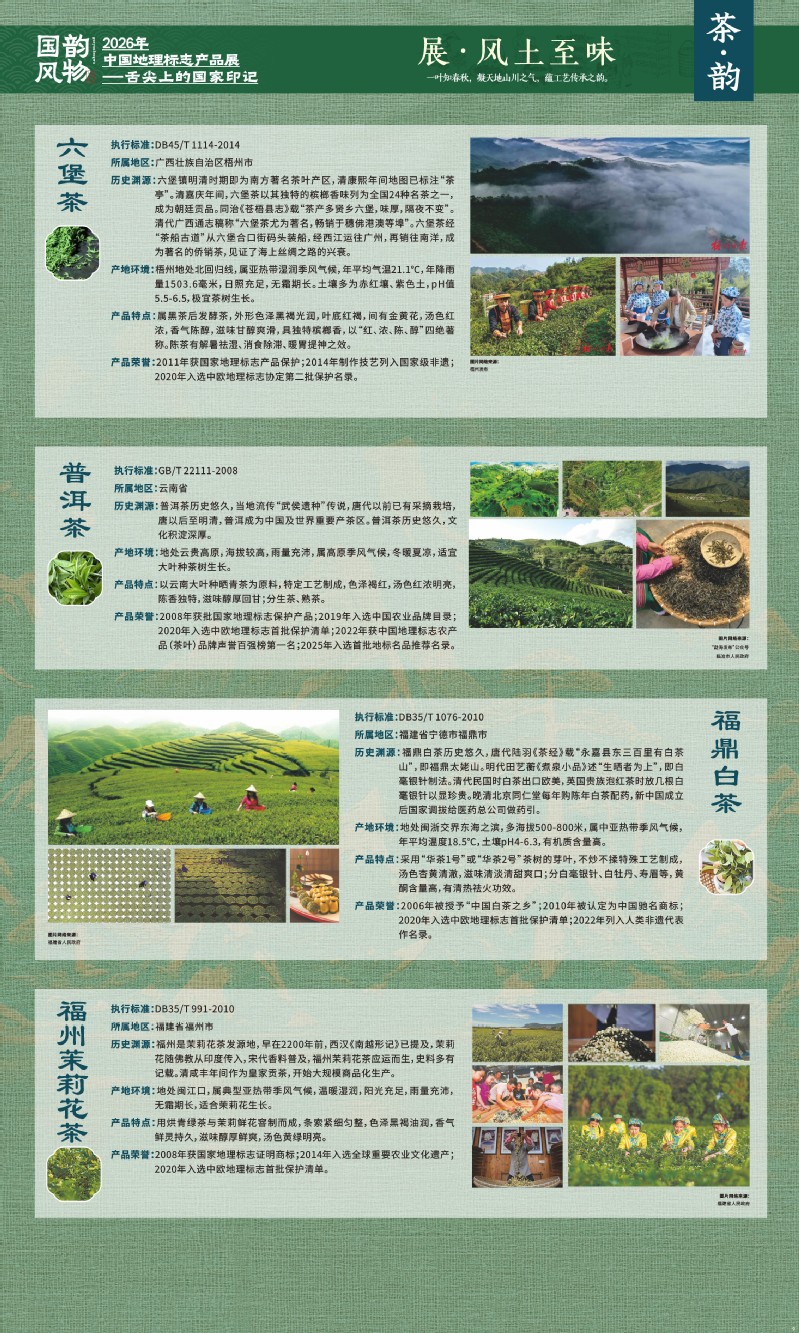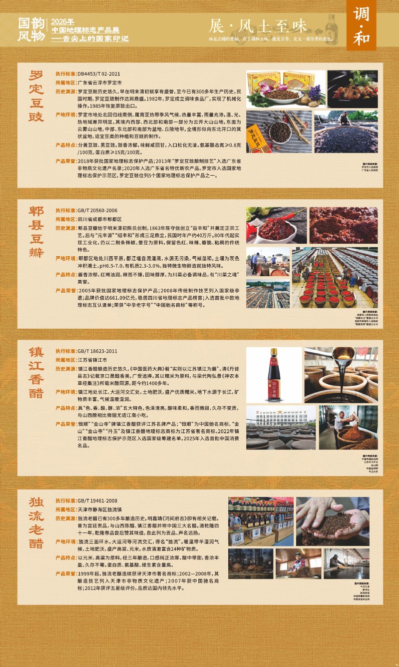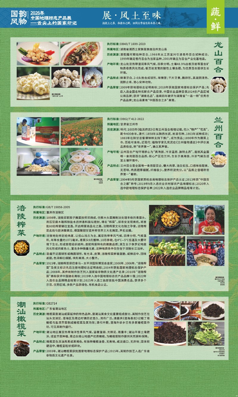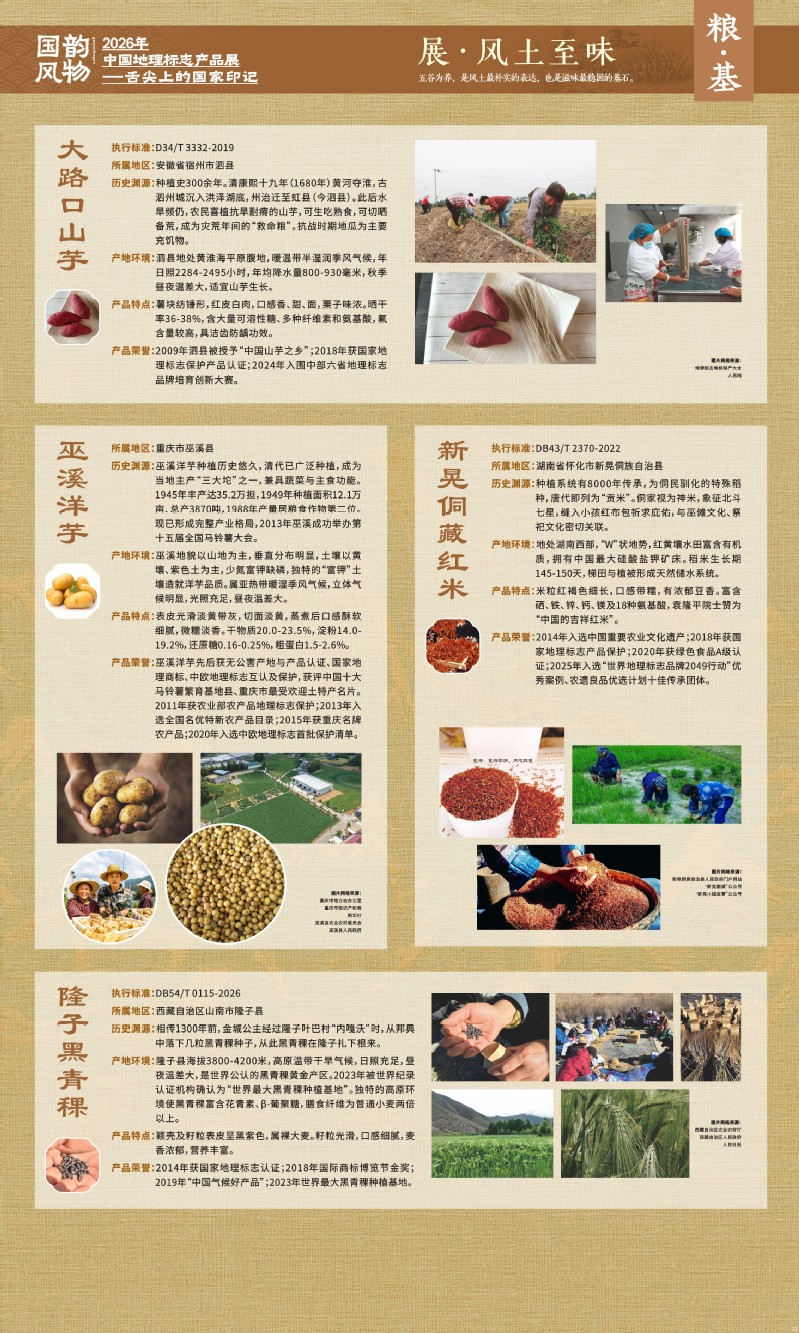 本次展览聚焦于地理标志产品中最贴近日常生活的舌尖风味。循着这缕源于水土的香气,您将走近神州大地的风土至味—一从北国粮仓到江南茶园,从深山秘境到浩瀚湖海。我们期待,通过这次展览,您不仅能感受到地理标志背后的生态密码与匠心传承,更能理解:每一次与地道风味的邂逅,不仅是对味蕾的犒赏,更是对一片土地的致敬、对一种传承的支持。地理标志,它最终指向的,是我们共同的文化认同与生活智慧。