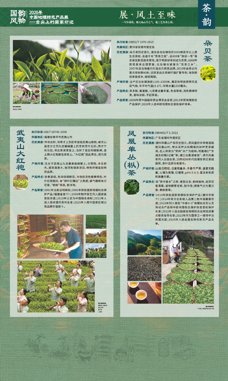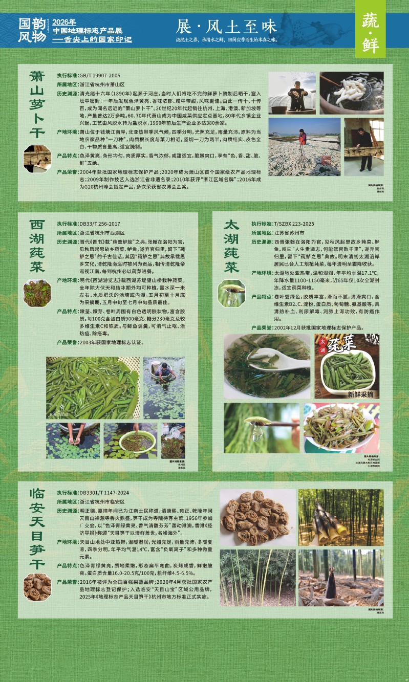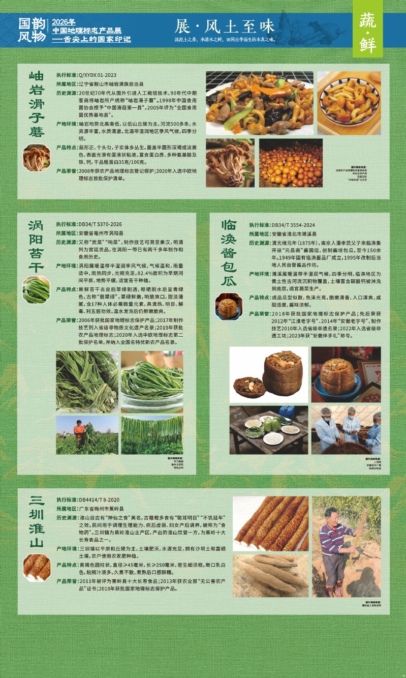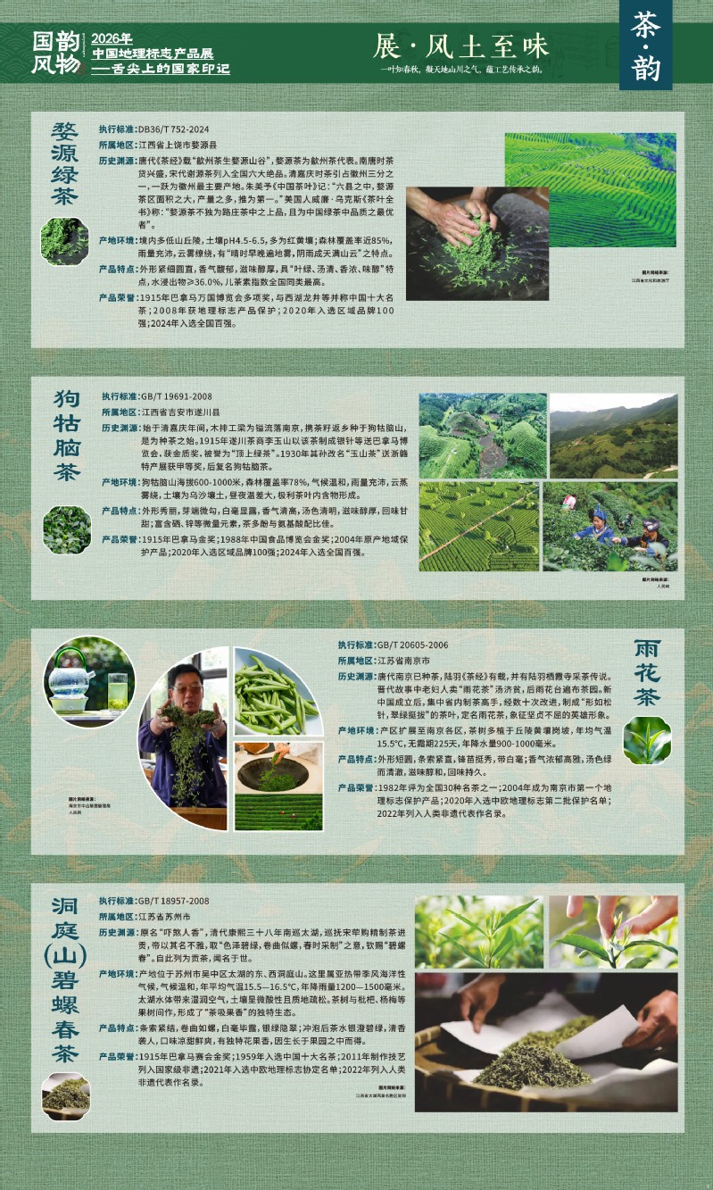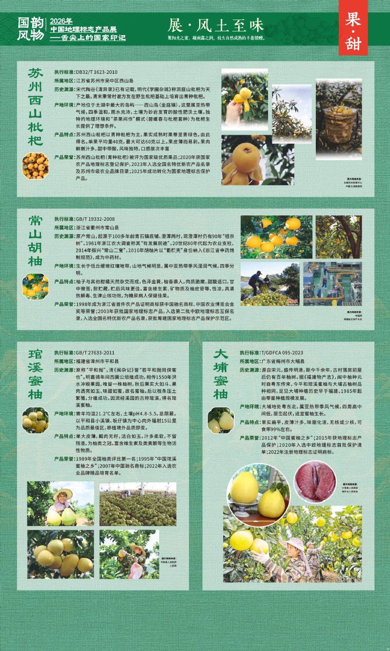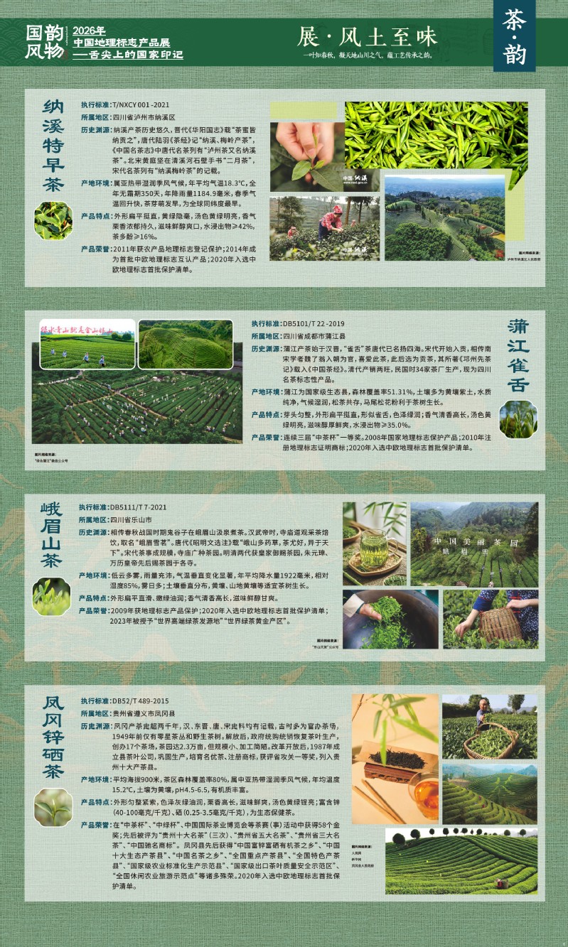 本次展览聚焦于地理标志产品中最贴近日常生活的舌尖风味。循着这缕源于水土的香气,您将走近神州大地的风土至味—一从北国粮仓到江南茶园,从深山秘境到浩瀚湖海。我们期待,通过这次展览,您不仅能感受到地理标志背后的生态密码与匠心传承,更能理解:每一次与地道风味的邂逅,不仅是对味蕾的犒赏,更是对一片土地的致敬、对一种传承的支持。地理标志,它最终指向的,是我们共同的文化认同与生活智慧。