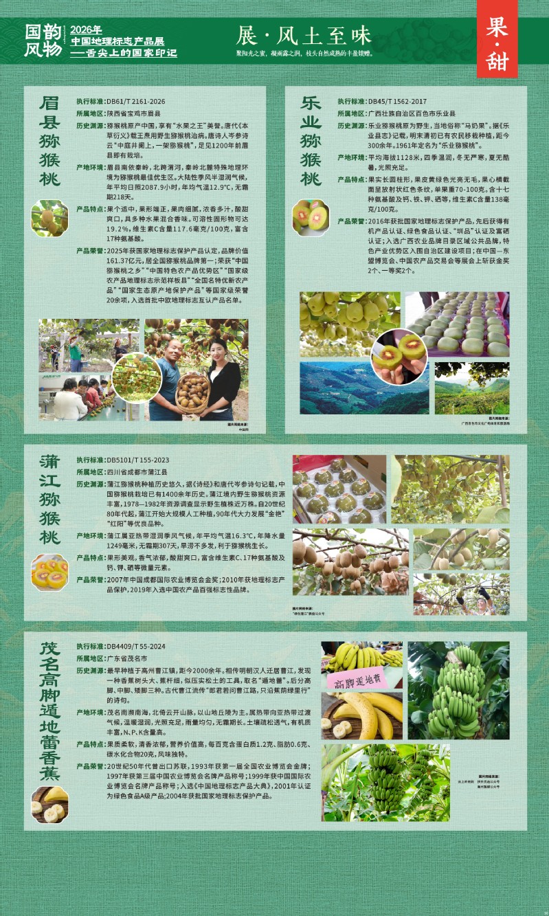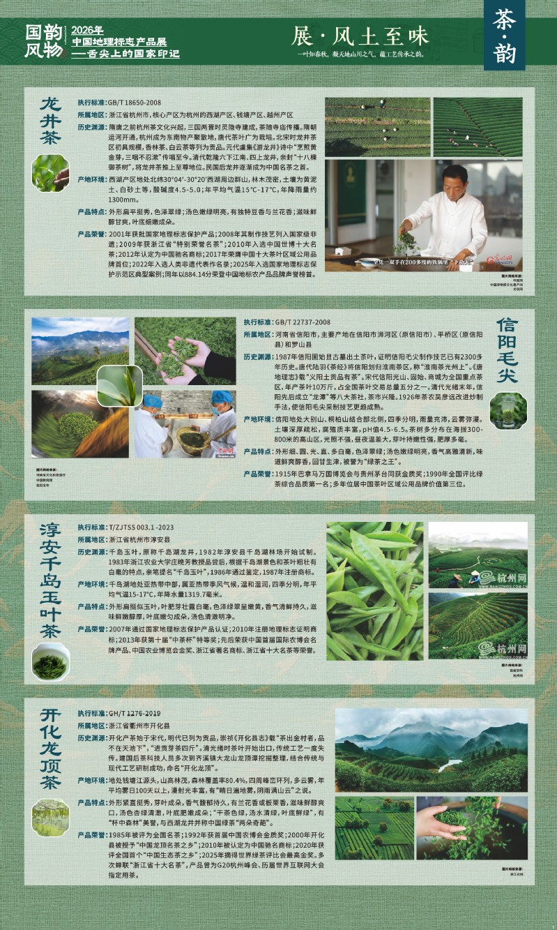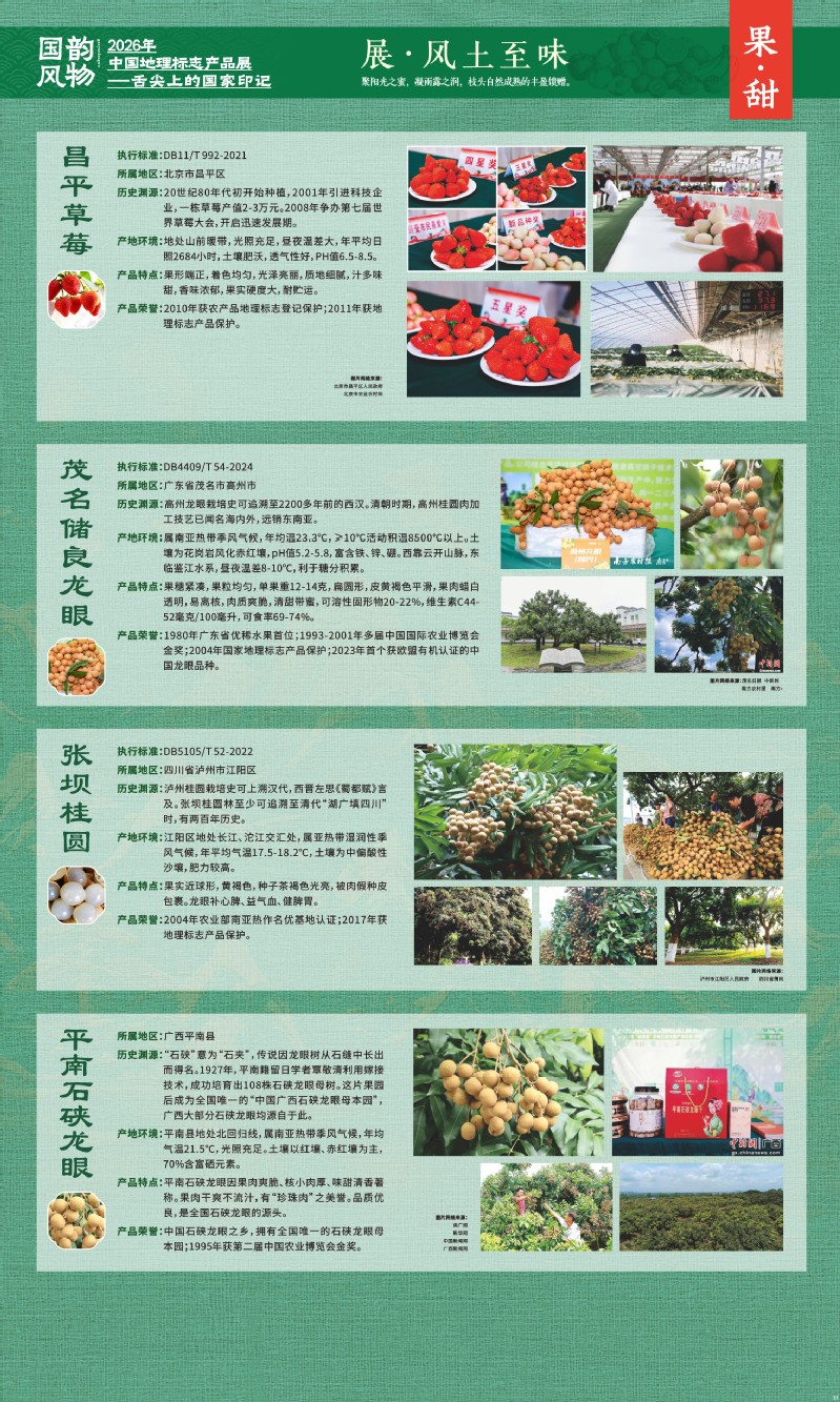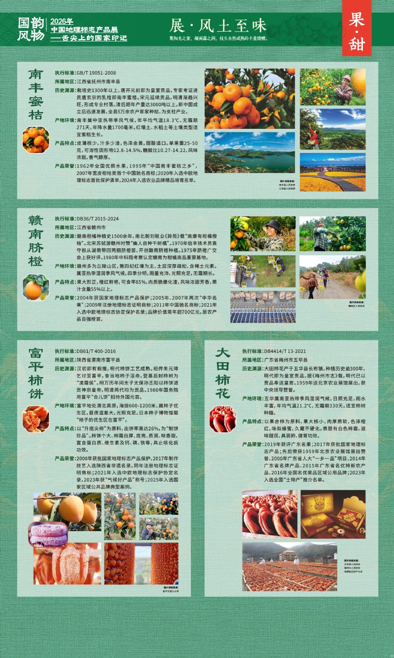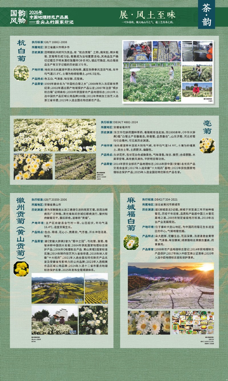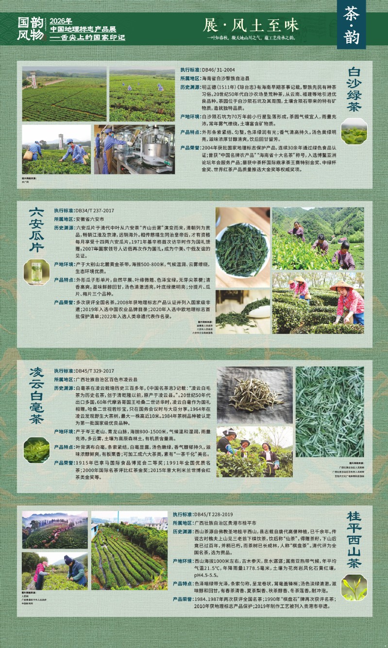 本次展览聚焦于地理标志产品中最贴近日常生活的舌尖风味。循着这缕源于水土的香气,您将走近神州大地的风土至味—一从北国粮仓到江南茶园,从深山秘境到浩瀚湖海。我们期待,通过这次展览,您不仅能感受到地理标志背后的生态密码与匠心传承,更能理解:每一次与地道风味的邂逅,不仅是对味蕾的犒赏,更是对一片土地的致敬、对一种传承的支持。地理标志,它最终指向的,是我们共同的文化认同与生活智慧。